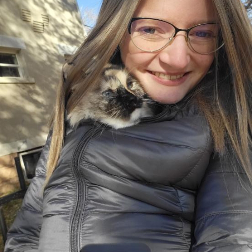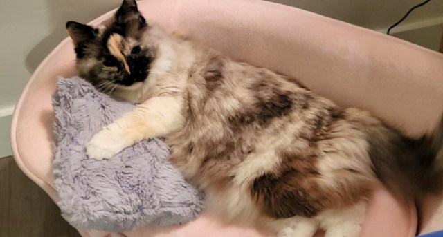 “I had a cat named Marley, and she and Gunther used to love to watch the world out the window together. When we lost her to kidney failure, it was awful for all of us. Gunther looked for her for months,” Stacie said. “Four years later, I didn’t realize we were ready for another cat until Greta caught my eye one Christmas. It only took 5 days for her and Gunther to begin to make friends, and it’s been the best thing for him. She brought life back into him!”