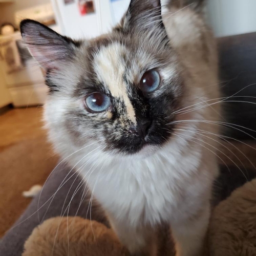 Gunther loves to chase straws, cuddle up with his humans on the couch (or, as Stacie fondly calls it, “cat traps” them, as we all know that once a cat is comfy, it’s a crime to move them), and will even play fetch! He also has supervised backyard time in which he loves to rub on his favorite tree, now affectionately named “Gunther’s Tree”.