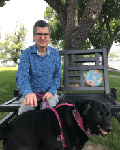 Butch is now three and a half years old, and he can walk, run, and jump just fine. His leg and shoulder barely bother him at all. And he has begun associating tall men in hats with his dad, so much so that if he meets one in passing, he will get excited and try to greet them. He also has a dog sister named Gracie, with whom he loves cuddling and going on walks, and playing fetch.