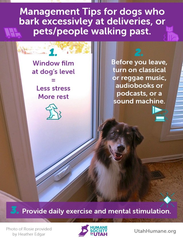 Management Tips for dogs who bark excessively at deliveries or people/pets walking past: