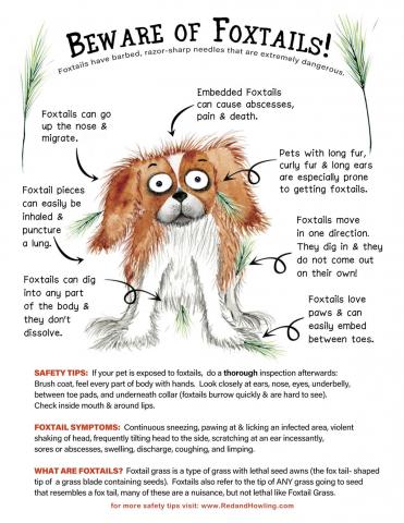 So far this season, we’ve been hearing increasing reports of people having to take their dogs to the veterinarian because of foxtail grass being embedded in their paws, ears, or even their nostrils or groin.