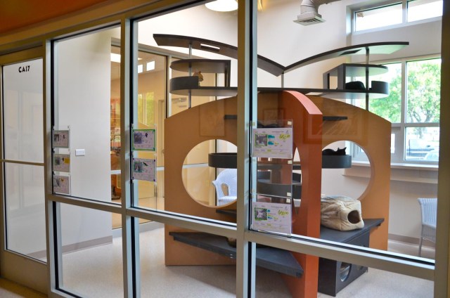 In May 2014, the highly anticipated “The Wait is Over, Rover” dog adoption area was completed. Our large and small dogs are now showcased for the public in “Dawgville” and “Tiny Town” respectively. As with the cats, the dogs are more relaxed in the new kennel systems that are separated into five different rooms and adoptions have increased as a result.