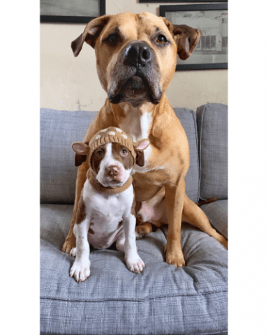 Guinn’s favorite memory of Tubs is now hanging on her office wall. “He had bonded with a puppy I was fostering that needed to be bottle-fed. The puppy adored Tubs so much and would watch him pose for pictures, and then she’d pose in the same way. I have a photo of the two of them posing together on my wall now.”