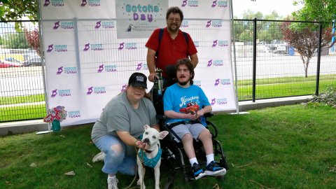 On August 1st, Ryan, Lauri, their son Daniel and Faith attended our first annual Gotcha Day event, presented by Mountain West Veterinary Specialists (MWVS). This free event celebrated HSU adopters and included food vendors, photo-ops, live music, and an interactive community art piece. Plus, a birthday cake and puppuccinos for all the dogs in attendance!